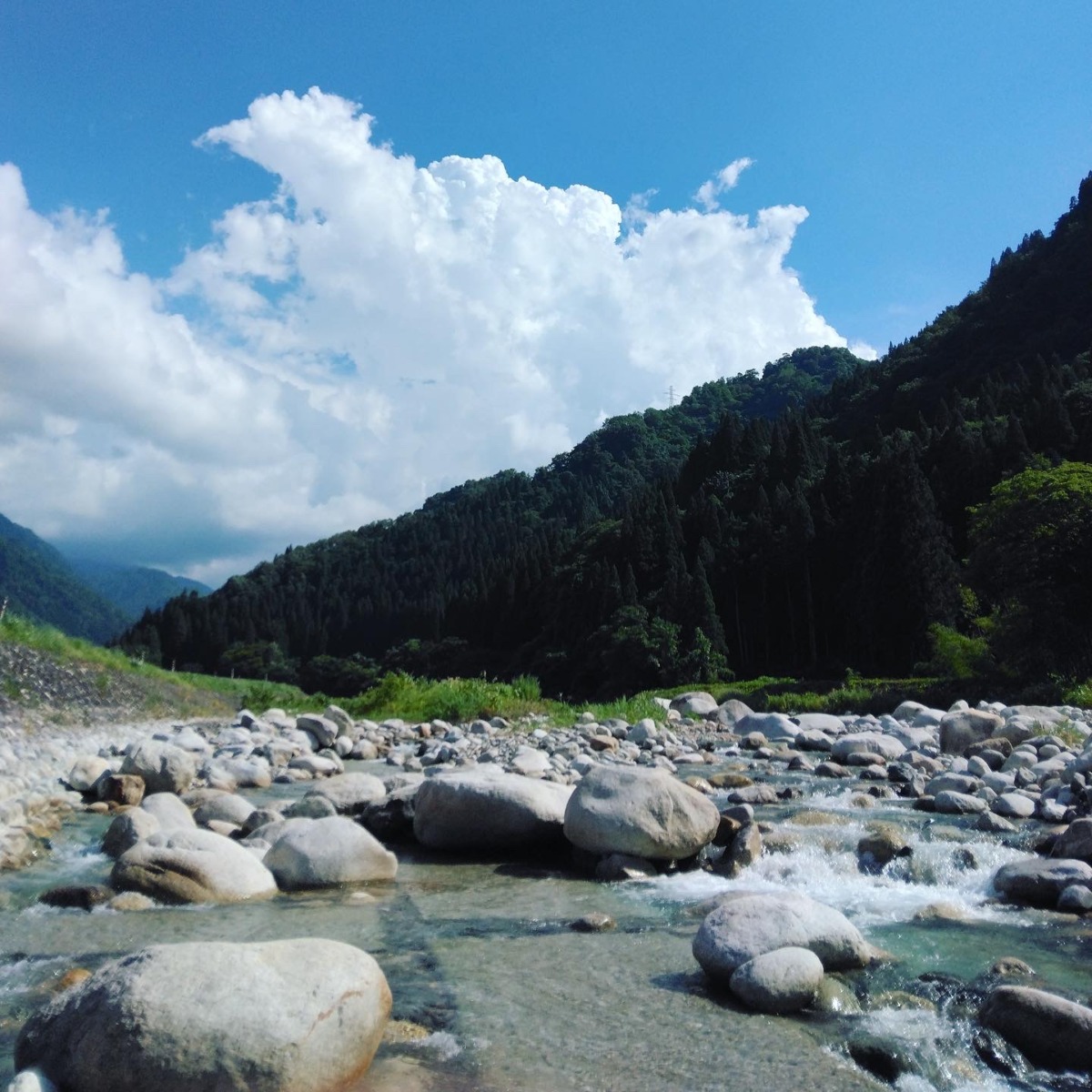 透き通った水、青空と入道雲、深緑の山々、、、